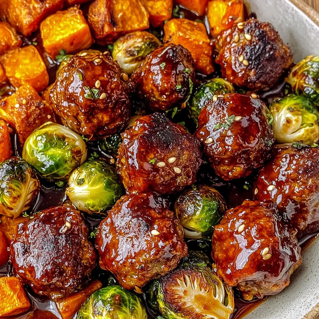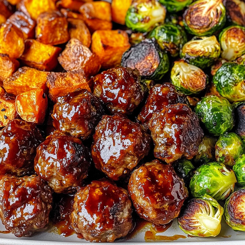 These Korean BBQ Meatballs and Vegetables are a delightful combination of flavors and textures. The meatballs are tender, juicy, and coated in a sweet glaze that caramelizes perfectly under the broiler. Pair them with crispy brussels sprouts and sweet potatoes for an easy, one-pan meal that is great for weeknight dinners or impressing guests at your next gathering.